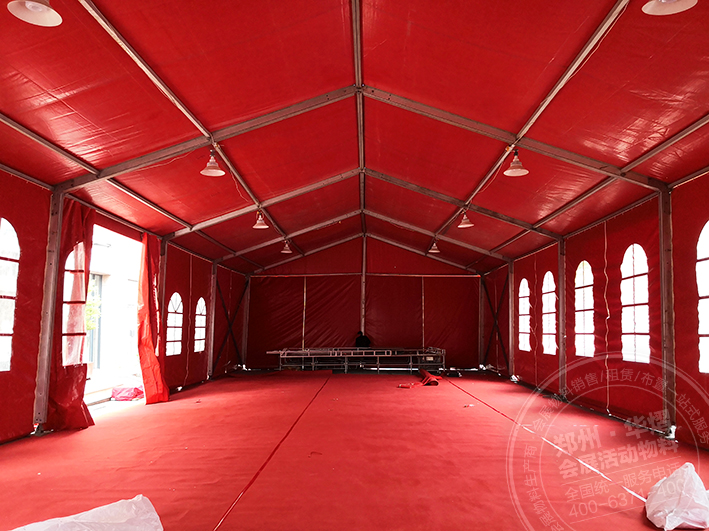 登封中天廣場紅色篷房租賃由鄭州華熠篷房提供,此次所搭建的篷房是一款大紅色活動篷房租賃。從圖中所示,我們可以看出活動所選用的地址是街道邊的水泥地上。篷房搭建不受場地限制,可以在水泥地上、土地上或者草地上等進行施工。