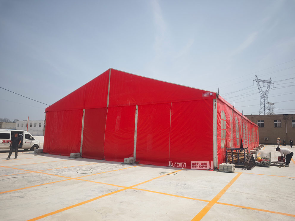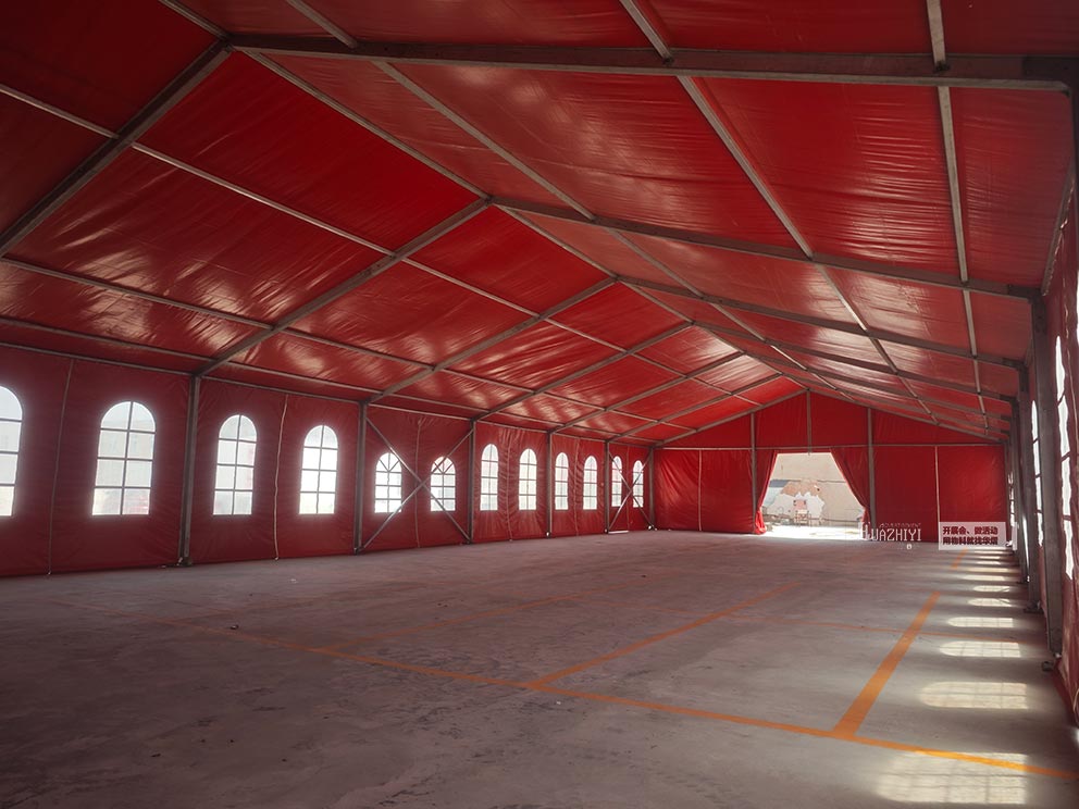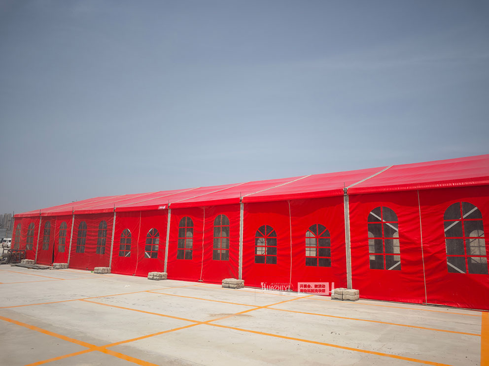 婚慶篷房是夏季婚禮市場的熱門之選。以紅色篷房為例,其鮮艷色彩契合傳統(tǒng)婚慶氛圍,鋁合金框架搭配雙層PVC篷布。內(nèi)部可靈活配置水晶吊燈、紗幔、地毯等裝飾,結(jié)合空調(diào)系統(tǒng),打造舒適浪漫的婚禮空間。鄭州華熠公司曾為多場戶外婚禮提供此類篷房,滿足新人對時效與美學(xué)的雙重需求。