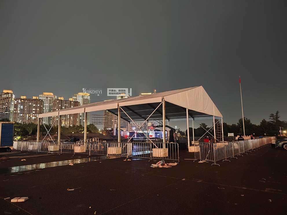 焦作篷房鐵馬出租搭建的白色人字形篷房采用大跨度設(shè)計(jì),純白篷布搭配銀色鋁合金支架,外觀簡(jiǎn)約大氣,與如意湖廣場(chǎng)的開闊環(huán)境相融合,同時(shí)在視覺上形成清晰的服務(wù)標(biāo)識(shí)。四周無篷布遮擋,篷內(nèi)空氣流通順暢,即便戶外炎熱,也能保持涼爽舒適的環(huán)境。