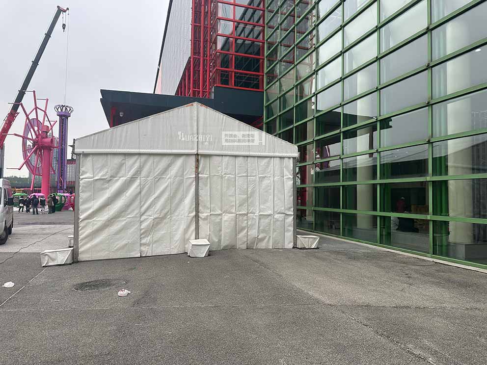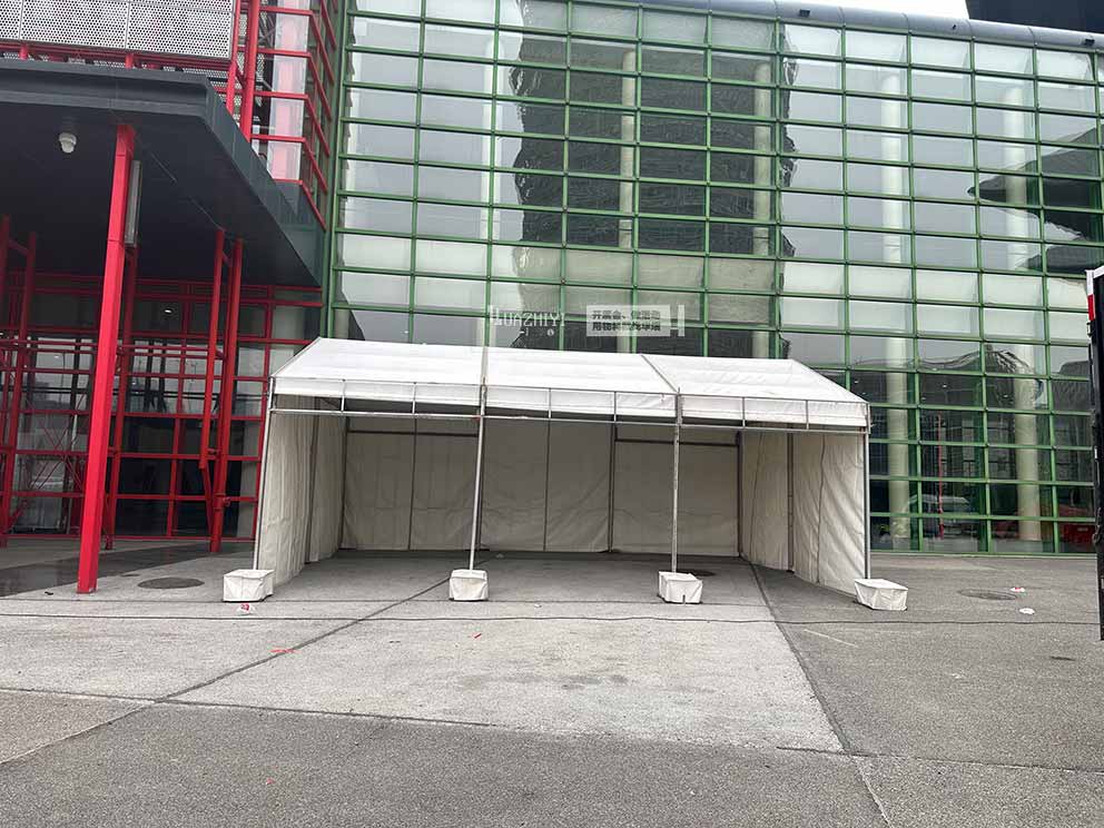 水泥地、瀝青地等硬化場地硬度高,地釘難以打入,此時地釘并非必需,需用其他固定方式替代。鶴壁篷房出租會根據(jù)篷房類型選擇替代方案:對于小型折疊帳篷,采用加重底座固定,每個底座重量15-20公斤,通過螺栓與篷房立桿連接,直接放置在硬化地面即可;對于大跨度人字形篷房,則采用膨脹螺栓固定,在篷房底座預(yù)設(shè)的螺栓孔處打入膨脹螺栓,將篷房與地面牢牢鎖定。