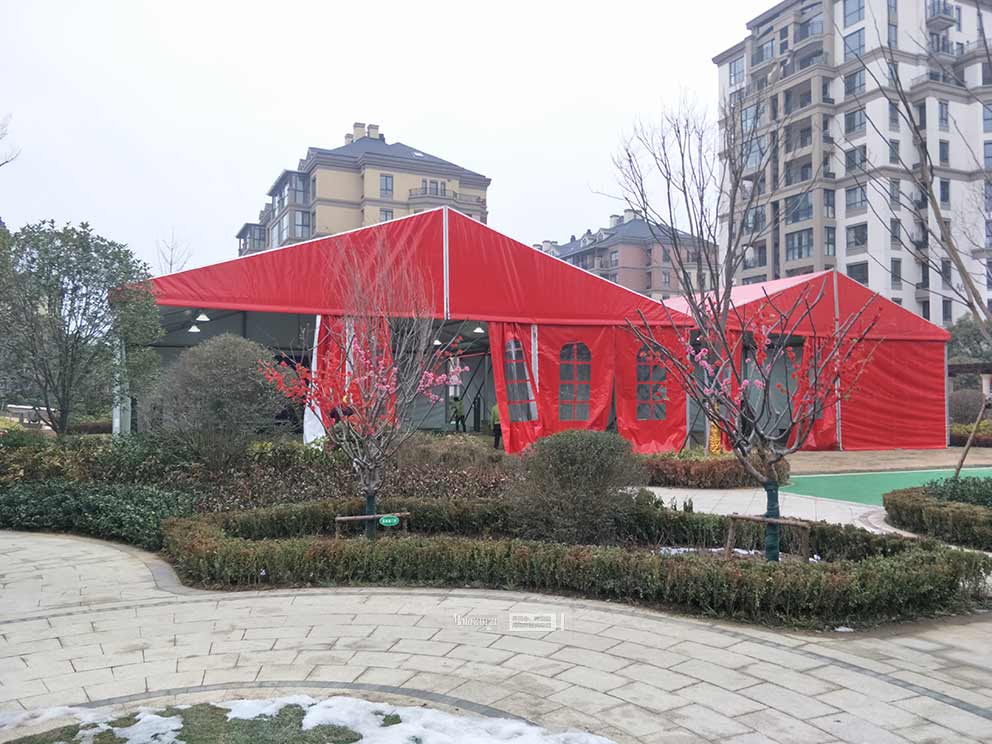 主動(dòng)供暖是冬季篷房保暖的核心。漯河婚禮篷房出租根據(jù)篷房面積給出針對(duì)性方案。小型篷房,可選用2-3臺(tái)立式空調(diào),放置在篷房角落,出風(fēng)口朝向場(chǎng)地中央,避免直吹賓客;中型篷房,建議采用燃?xì)鉄犸L(fēng)機(jī)或地暖設(shè)備,地暖則通過(guò)在篷房地面鋪設(shè)發(fā)熱膜,從底部向上均勻散熱,腳暖身更暖,尤其適合長(zhǎng)時(shí)間停留的婚禮場(chǎng)景。
