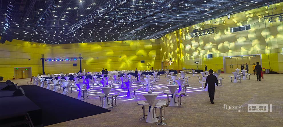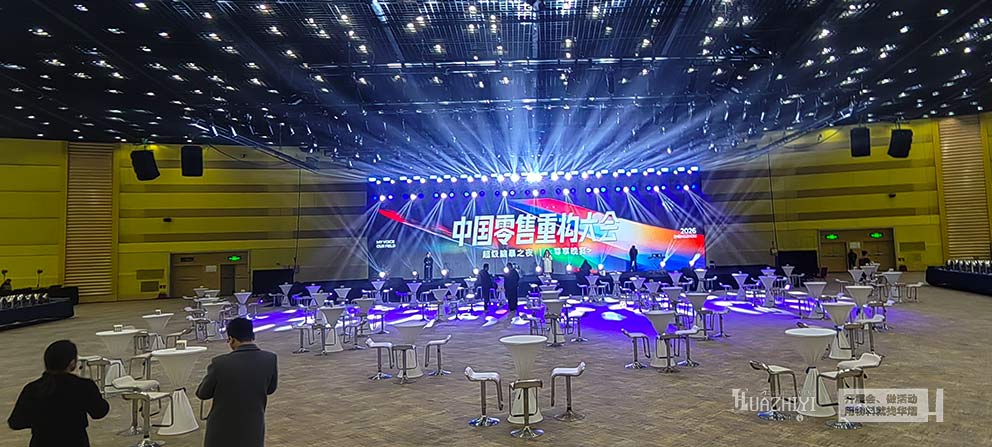 吧桌采用簡約流線型設(shè)計,桌面平整寬敞,材質(zhì)耐磨易清潔,完美適配商務(wù)場景;吧椅造型輕盈舒適,久坐不累,高度與吧桌精準匹配,既保證了坐姿的舒適感,又不占用過多空間,讓有限區(qū)域容納更多交流互動可能。同時,統(tǒng)一的簡約色系與精致質(zhì)感,與大會高端商務(wù)氛圍高度契合,成為會場中低調(diào)卻亮眼的存在,為整體空間質(zhì)感加分。高效的布置離不開專業(yè)的執(zhí)行團隊。鄭州華熠團隊提前進場勘測場地,結(jié)合大會動線規(guī)劃與區(qū)域功能需求,制定詳細的擺放方案。