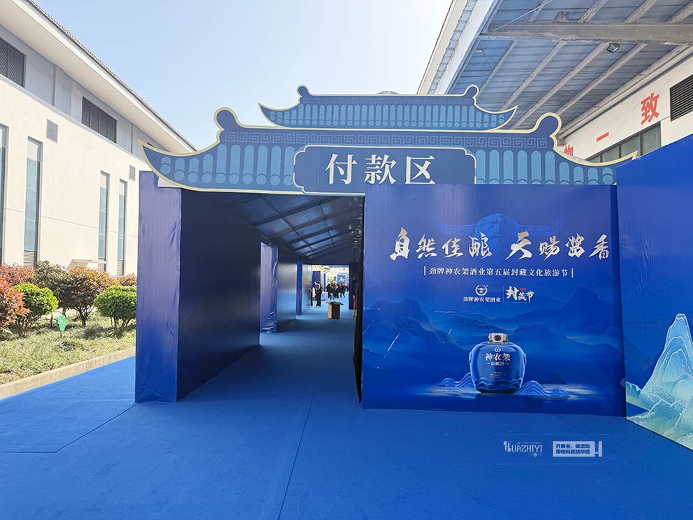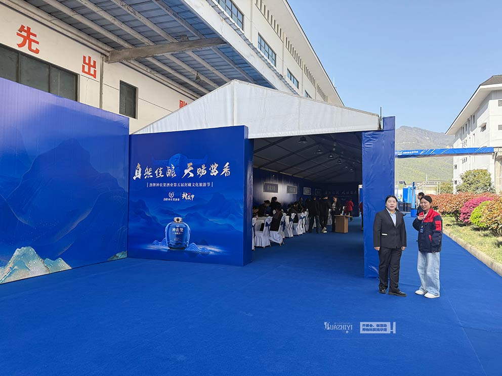 定制款藍(lán)色篷房成為活動(dòng)現(xiàn)場(chǎng)的亮眼標(biāo)識(shí),色調(diào)清新雅致,與神農(nóng)架的青山綠水相映成趣,既呼應(yīng)了勁牌神農(nóng)架酒業(yè)的生態(tài)理念,又兼具實(shí)用功能。篷房采用高強(qiáng)度框架與優(yōu)質(zhì)篷布,防曬防水、穩(wěn)固耐用,可靈活劃分封藏儀式區(qū)、休憩區(qū)、展示區(qū),為各項(xiàng)活動(dòng)的順利開(kāi)展提供可靠空間保障,同時(shí)成為現(xiàn)場(chǎng)打卡取景的熱門(mén)場(chǎng)景。